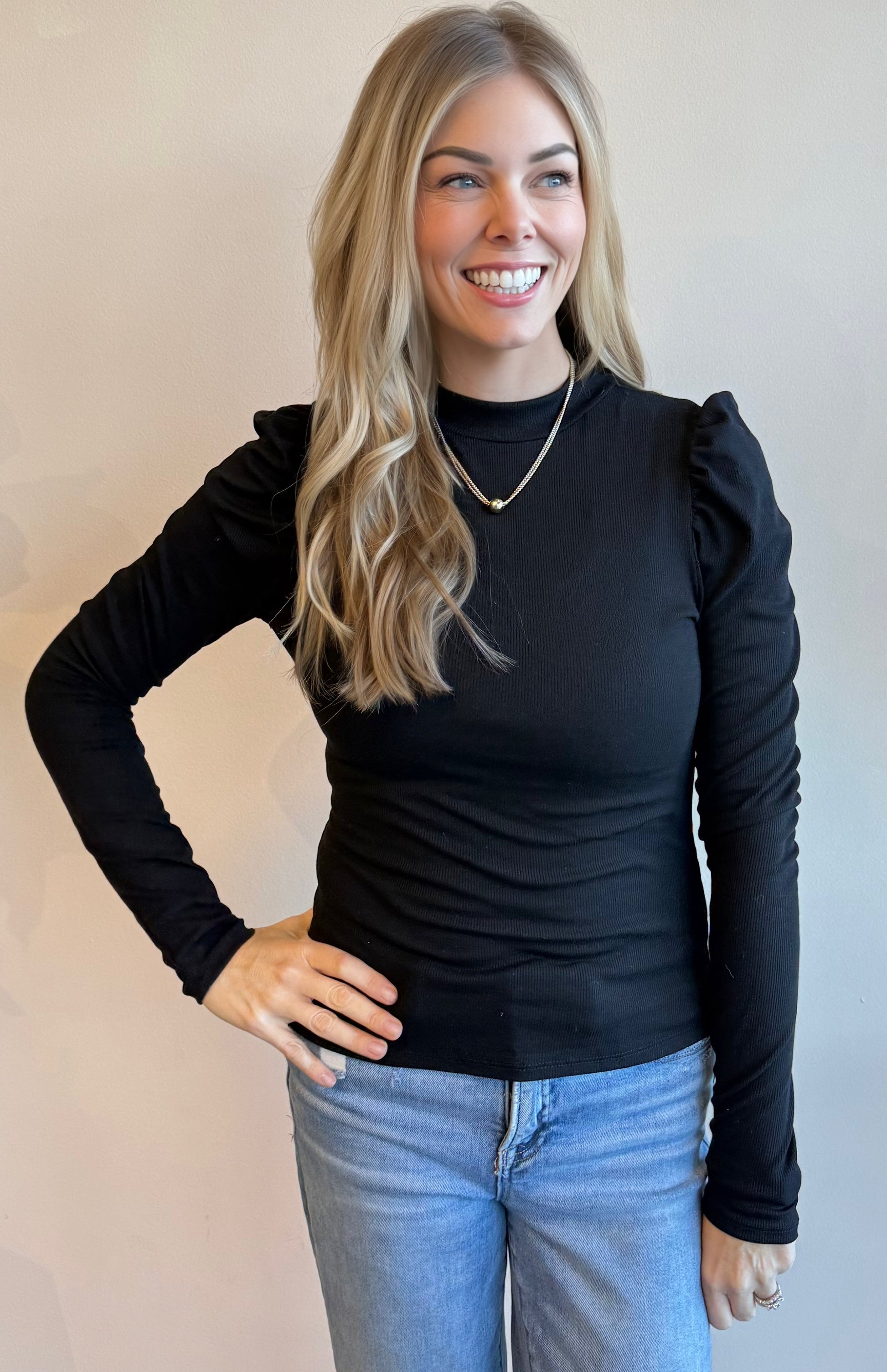 A sleek essential with just the right amount of detail, the Cammie Mockneck Tee is your go-to base layer for chic everyday style. With subtle puffed shoulders and a polished mock neckline, this fitted long sleeve adds sophistication to your wardrobe staples. Dress it up with trousers or keep it casual with denim—it’s that versatile.