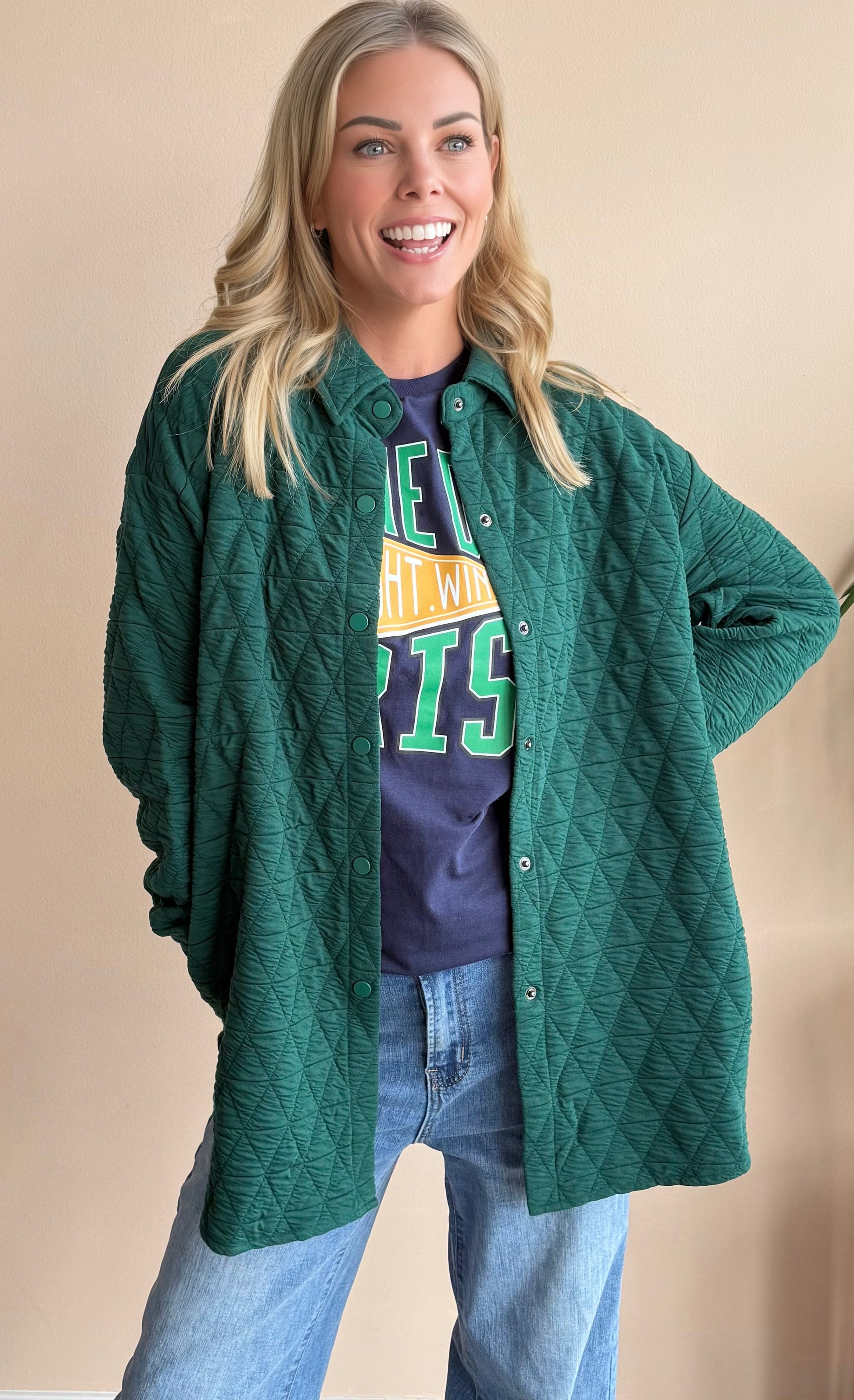 The perfect blend of cozy and polished, the Odessa Quilted Shacket is your go-to layer for transitional weather. With its textured quilted design and oversized fit, it’s effortlessly cool while still being endlessly versatile. Style it over denim and a tee for casual days or layer it with trousers and boots for an elevated look. Available in rich seasonal shades, it’s the shacket you’ll be reaching for on repeat.