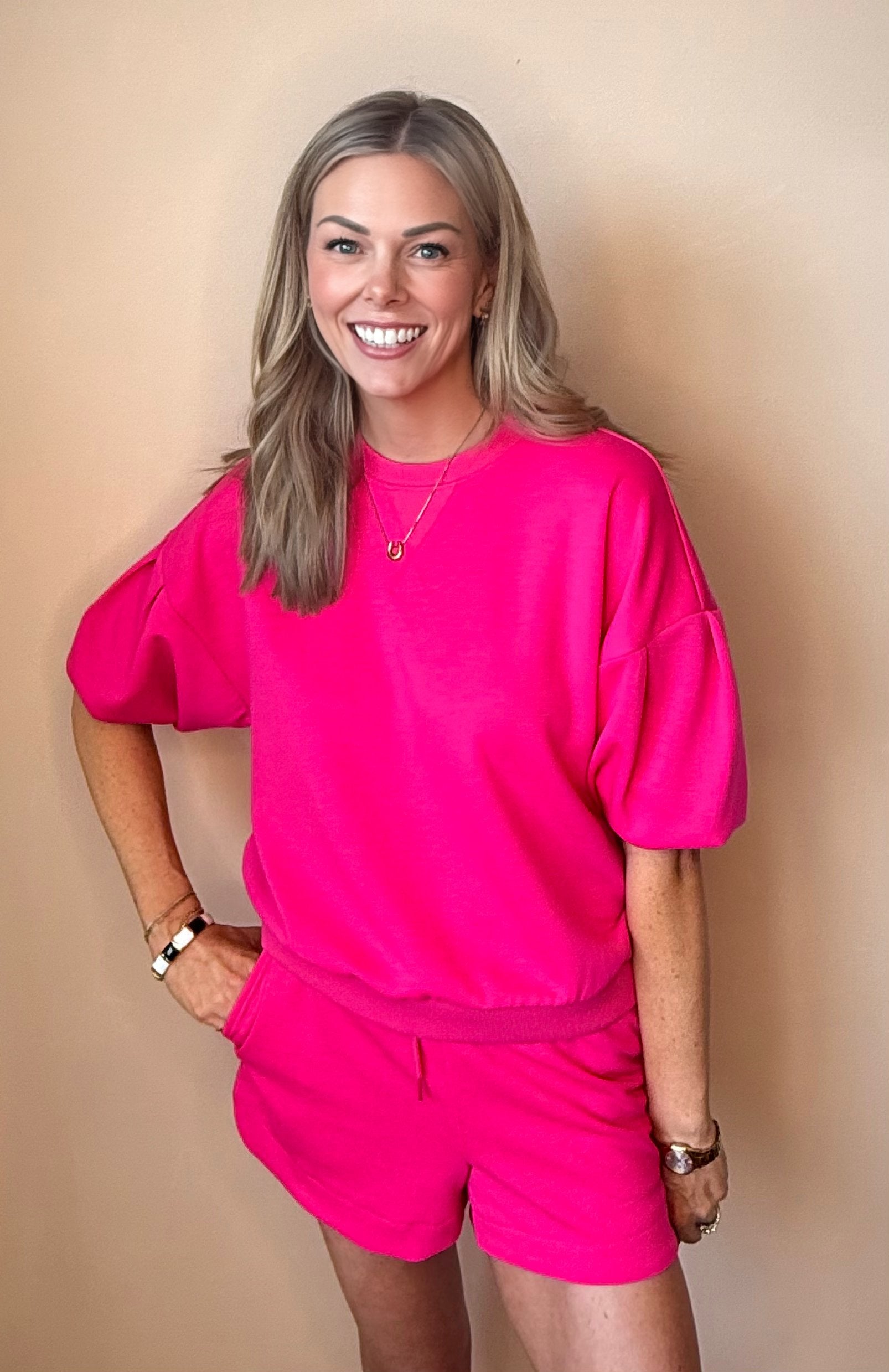 Your favorite comfy sweatshirt — just a little more elevated. The Puff Sleeve Scuba Sweatshirt is made from smooth, structured scuba fabric with soft stretch and statement sleeves that instantly dress things up. Cozy enough for everyday, polished enough to wear out.