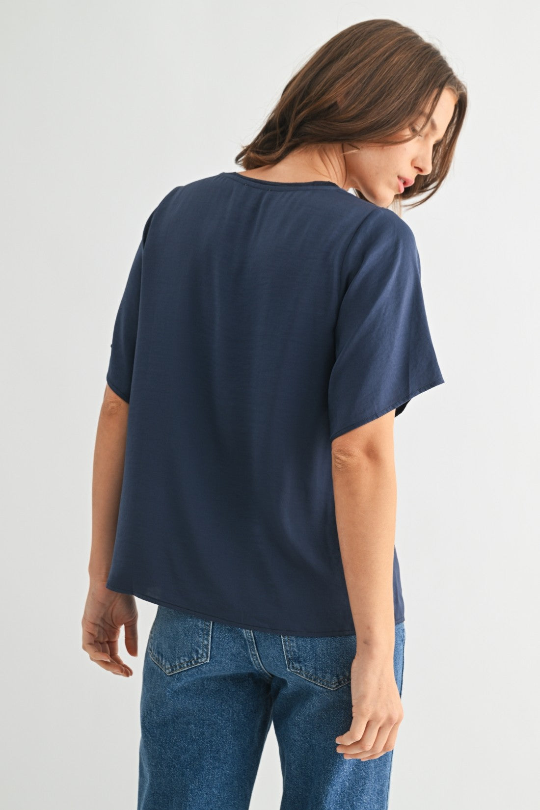 Every wardrobe deserves a luxe upgrade, and The Meghan Silky Tee is here to deliver. Designed in a rich navy hue, this tee combines effortless style with a polished finish that feels as good as it looks. Its silky soft fabric drapes beautifully, while the relaxed fit and chest pocket keep it laid-back and versatile. Perfect for layering under blazers, pairing with denim, or dressing up with trousers, this tee is the definition of everyday chic.