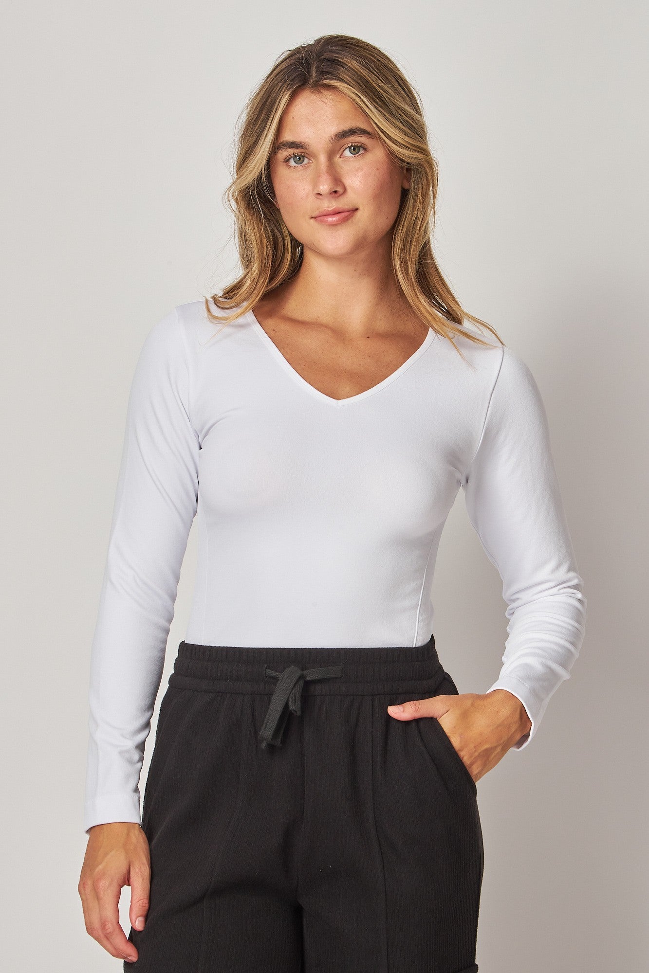 Classic V-neckline that’s flattering and easy to layer